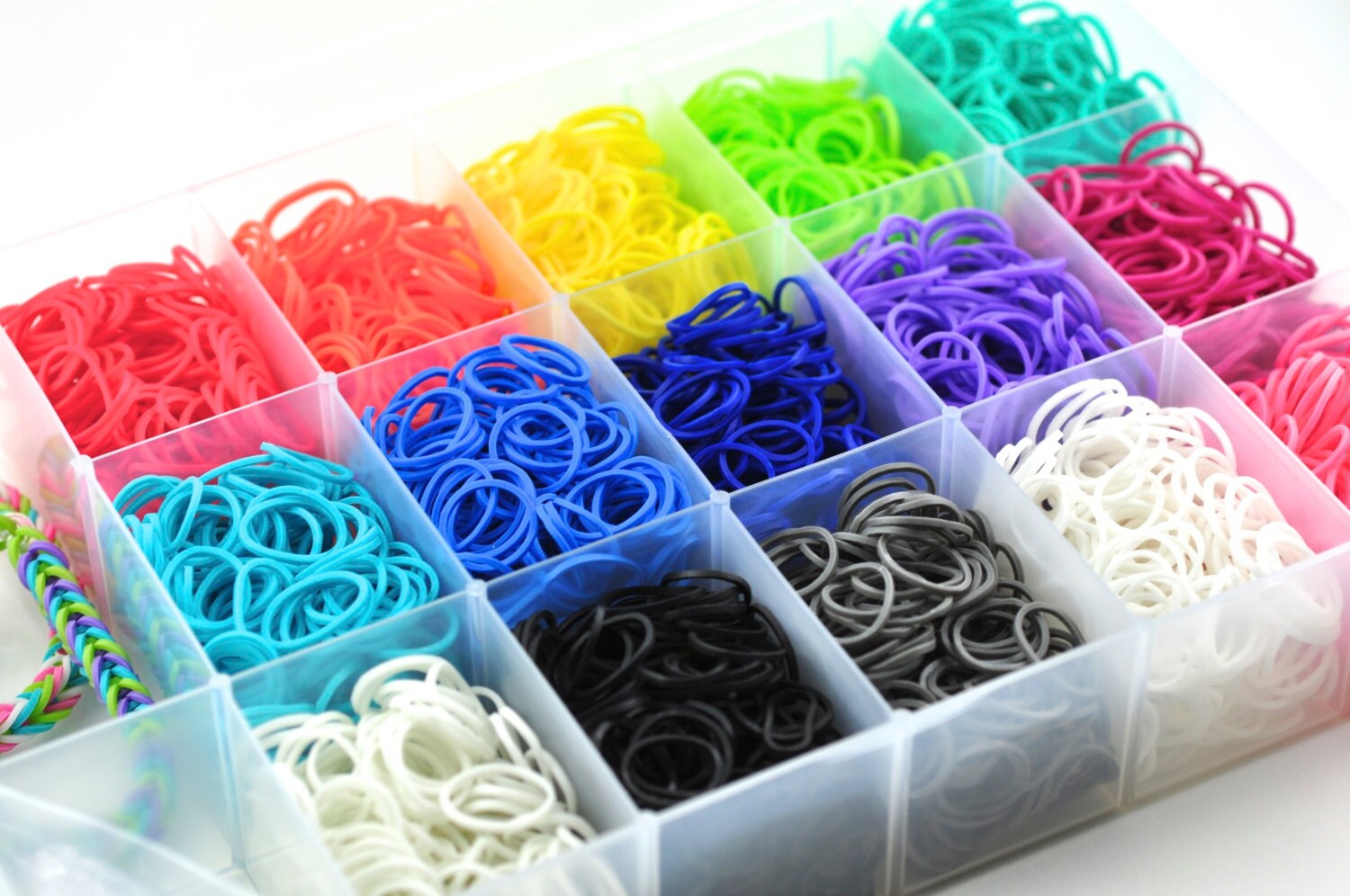 En mi investigación he descubierto que las gomitas originales, las que empezaron la fiebre se llaman RAINBOW LOOM y se usan para hacer pulseritas, diademas, collares, anillos y hasta figuras (he visto una tortuguilla hecha de gomitas). Las que yo he comprado serán "made in china" y se llaman Krazy Loom.